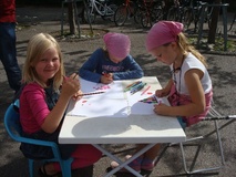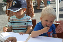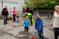 Kyläriehassa 31.8.2013 viihdyttiin, pienestä sateesta huolimatta. MLL:n temppuradalla riitti huisketta ja pääesiintyjä Kengurumeininki tanssitti perheen pienimpiä ja vähän isompiakin.