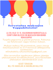 Muksujen vappubileet 29.4.2023 Kolohongan Nutalla, esiintyjänä Rokkasoppa Duo