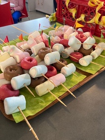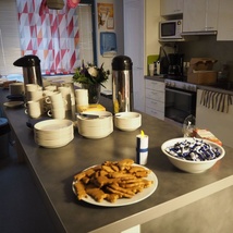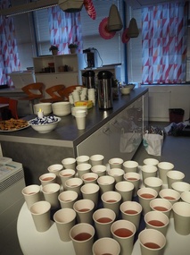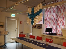 Perhekahvilassa on askarreltu koristeita juhlaan