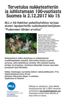 Suomi 100-juhla ja nukketeatteriesitys "Pudonneen tähden arvoitus" 2.12.2017